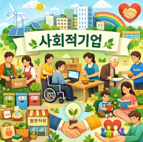 사회적기업이란 영리기업과 비영리기업의 중간 형태로, 사회적 목적을 우선적으로 추구하면서 재화·서비스의 생산·판매 등 영업활동을 수행하는 기업(조직)을 말함